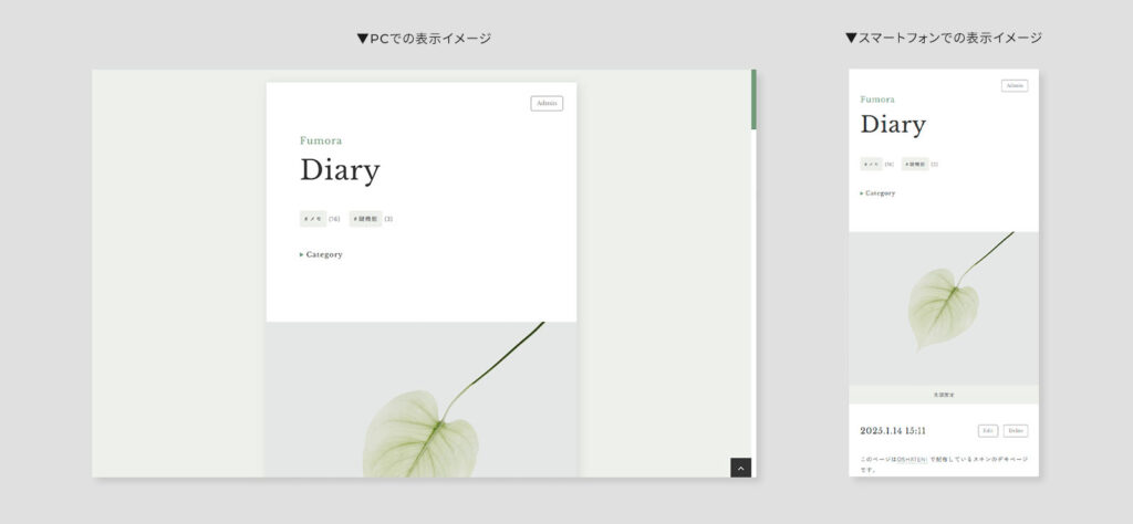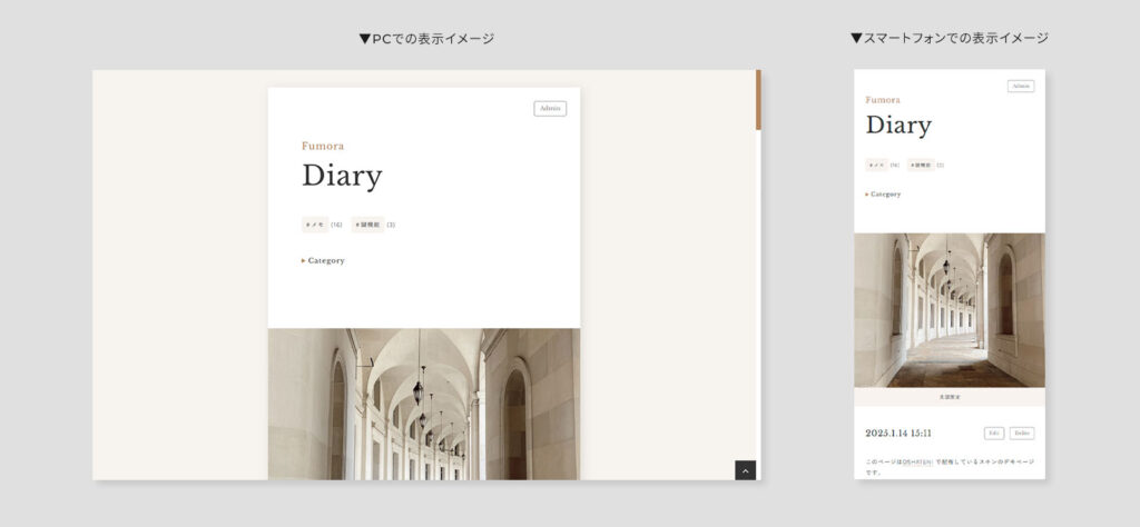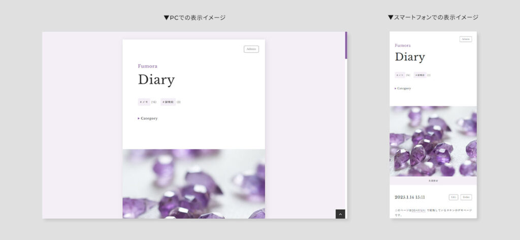 「Fumora Skin」は「てがろぐ」を利用した、くすみカラーやペールトーンを基調にした柔らかいイメージのブログスキンです。ページのトップに配置した画像ブロックがアクセントを添えます。